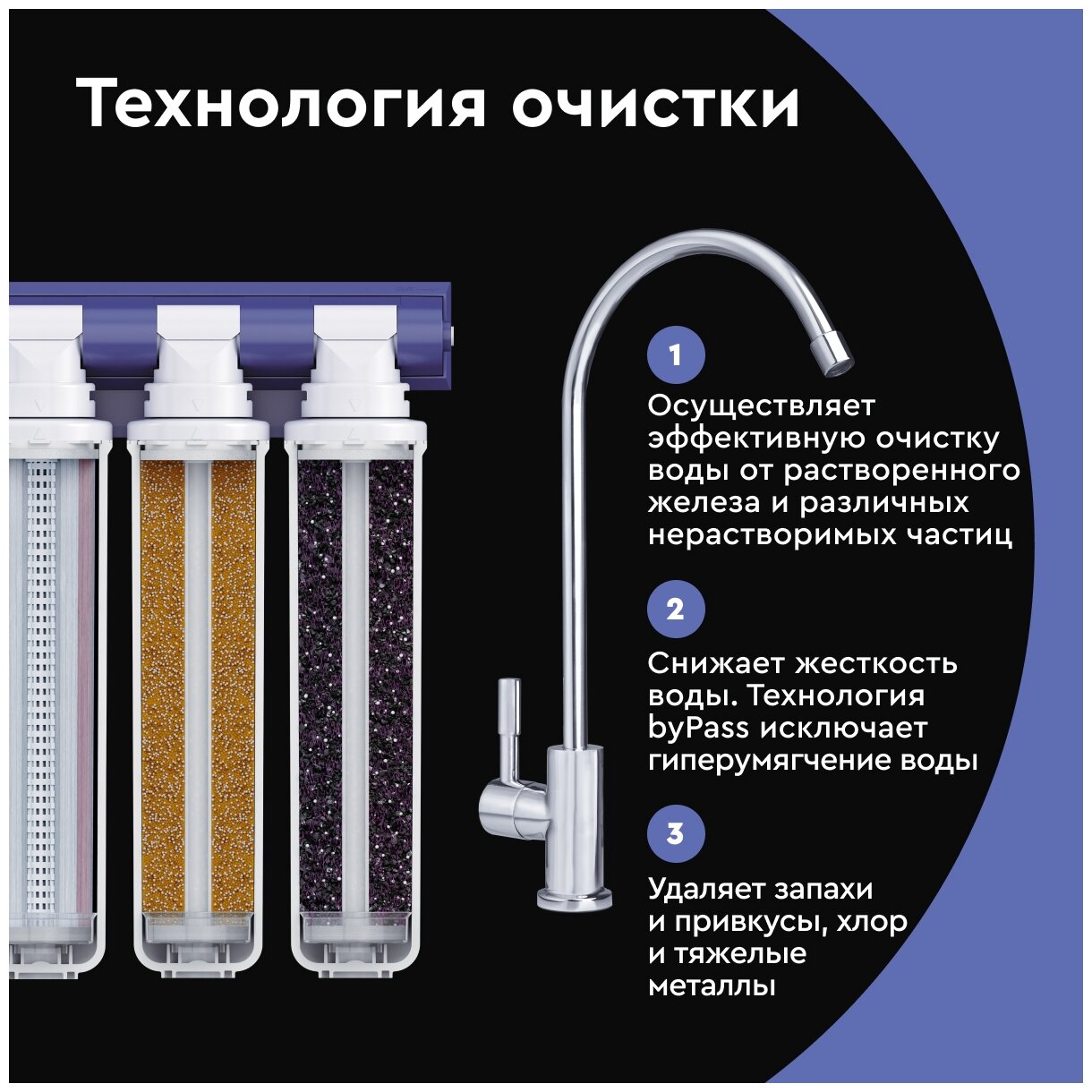 Filter type: under the sink system, type: filter, cleaning functions: ion exchange, mechanical filtration, iron removal, free chlorine removal, features: water connection, number of cleaning stages: 3, type �