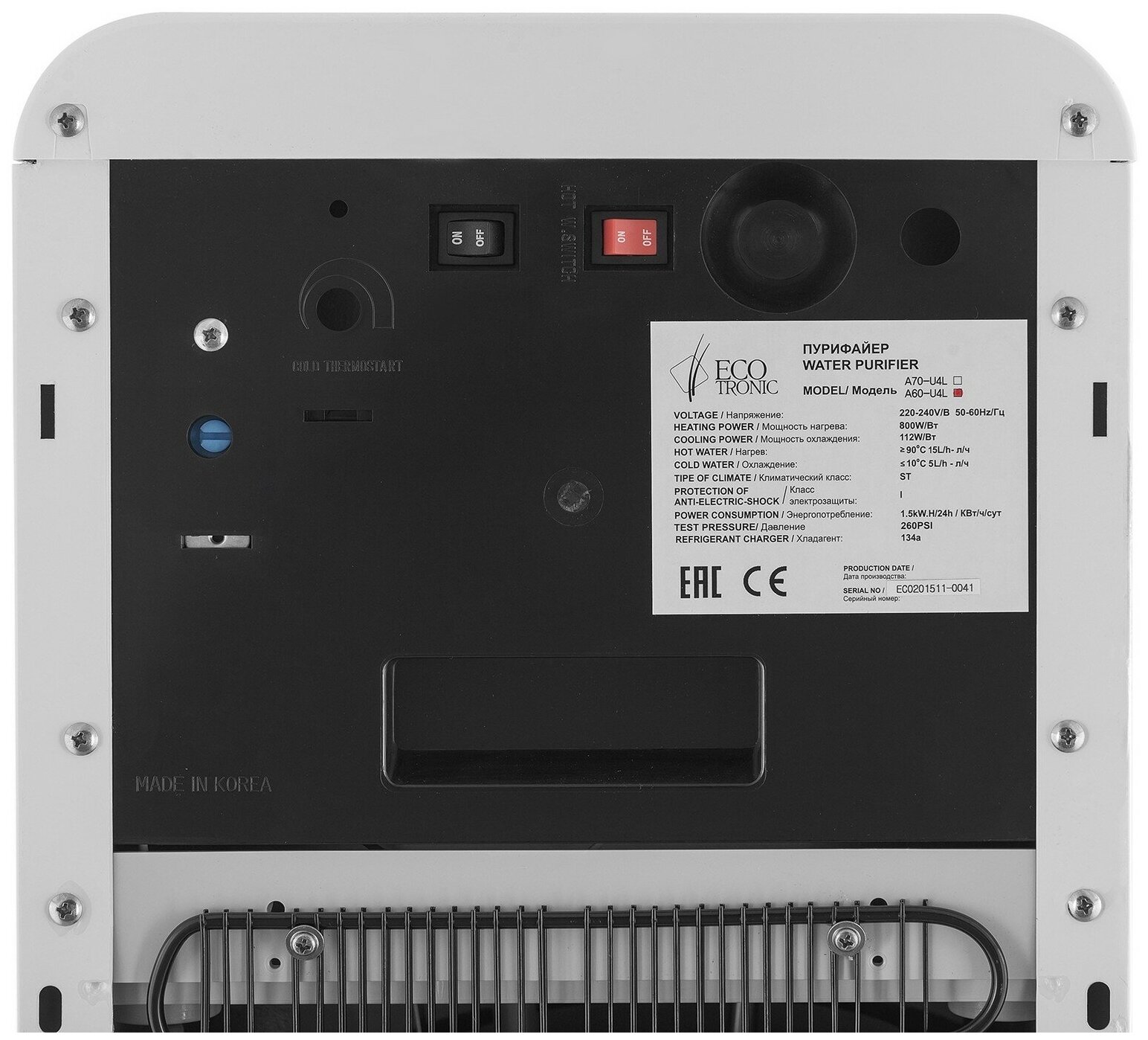 Type: purifier, floor-standing, cooling type: compressor, not applicable bottle installation, heating, heating power: 1000 W, cooling power: 140 W, child protection, width: 32 cm, depth: 35.70 cm, height: 112 cm, weight: 21.20 kg