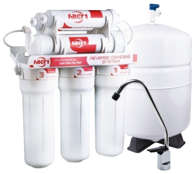 Filter type: "under the sink" system, type: filter, number of purification stages: 5, water type: cold, container volume: 8 l, functions: mineralization, iron removal, reverse osmosis, free chlorine removal, softening