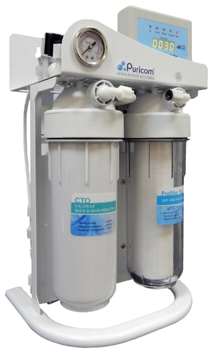 Auto-washing of the membrane; computer control unit with LED indicators of the system status and a digital indicator of the degree of cleaning; measuring the number of particles dissolved in water TDS-meter; drive size