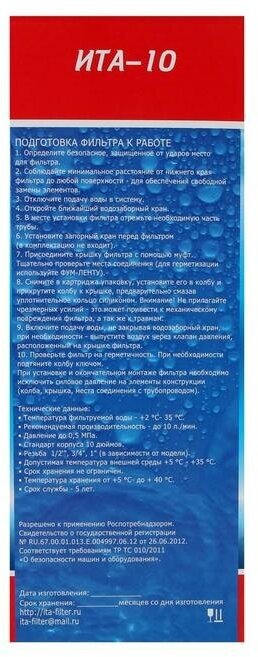 Filter type: main, type: filter, cleaning functions: mechanical filtration, features: water supply connection, transparent body, number of cleaning stages: 1, water type: cold, purpose: household appliances