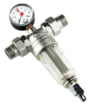 Body material: brass, connection type: socket BP/BP, nominal pressure: PN 16, cell size: 100 microns, options: pressure gauge, drain