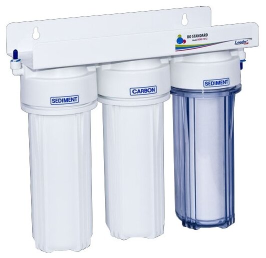 Instead of the third stage cartridge, a softening cartridge with an ion exchange resin can be installed to remove hardness salts from the water; Max. inlet water temperature: 40 °C; min. inlet water temperature: 3 °C; min. pressure