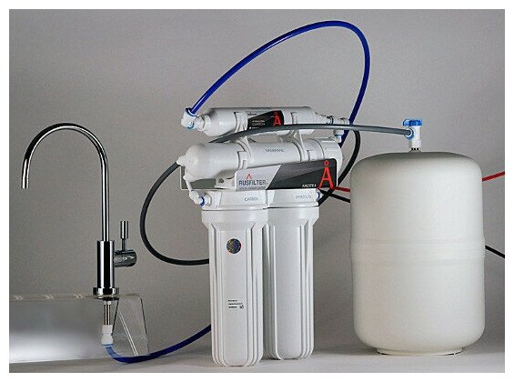 Filter type: system "under the sink", type: filter, features: connection to the water supply, number of purification stages: 4, type of water: cold, functions: iron removal, reverse osmosis, free chlorine removal, softening