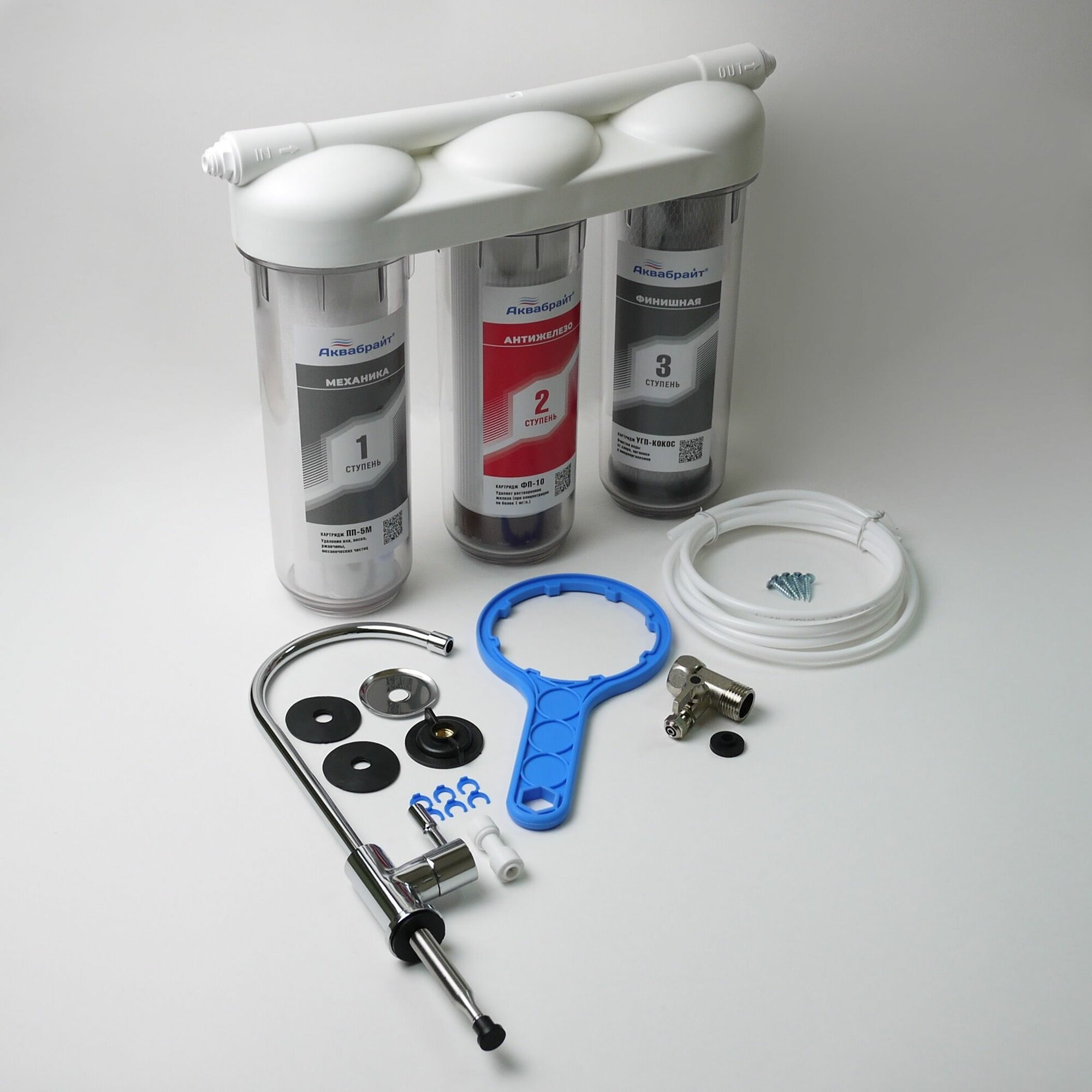 Filter type: "under the sink" system, type: faucet with filtration function, features: connection to the water supply, transparent housing, Separate tap, number of cleaning stages: 3, type of water: hard, cold, functions: iron-free