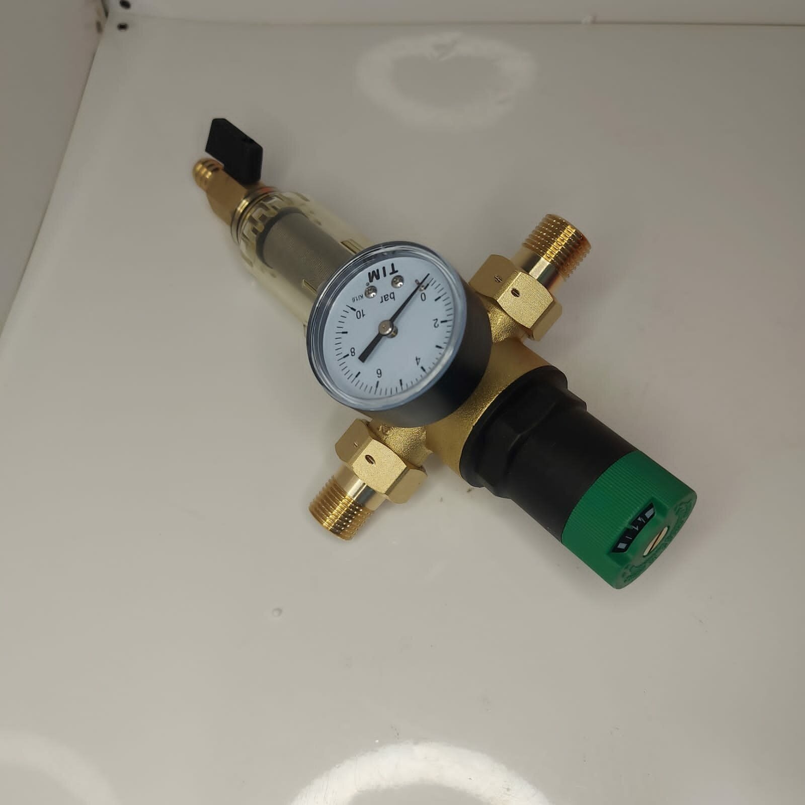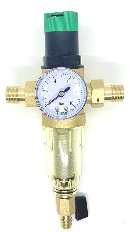 Connecting size 1/2"; nominal diameter G 3/4; self-cleaning filter, with pressure reducer and glass body, with pressure gauge, Americans and drain cock with fitting