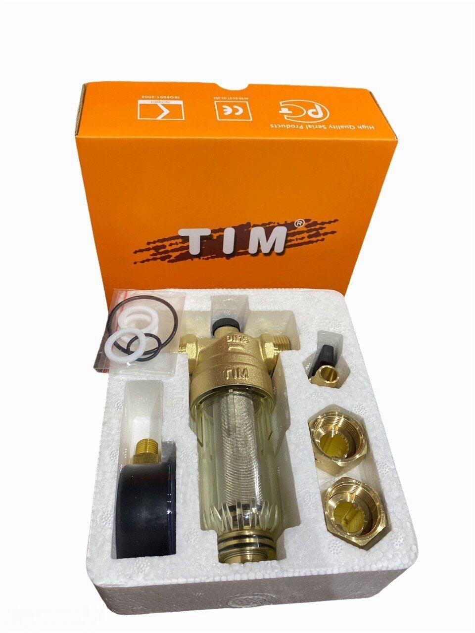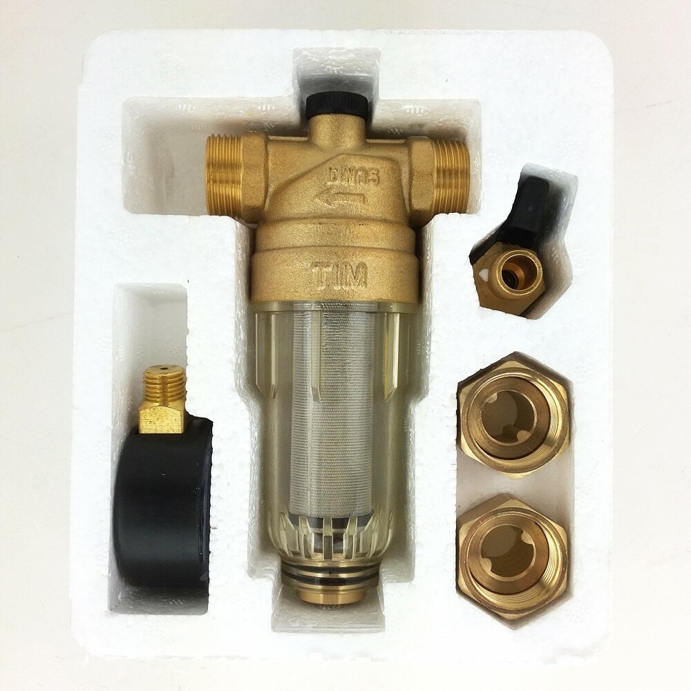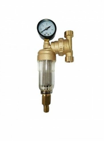 Body material: brass, type of connection: coupling NR/NR, conditional pressure: PN 25, cell size: 100 µm, options: manometer