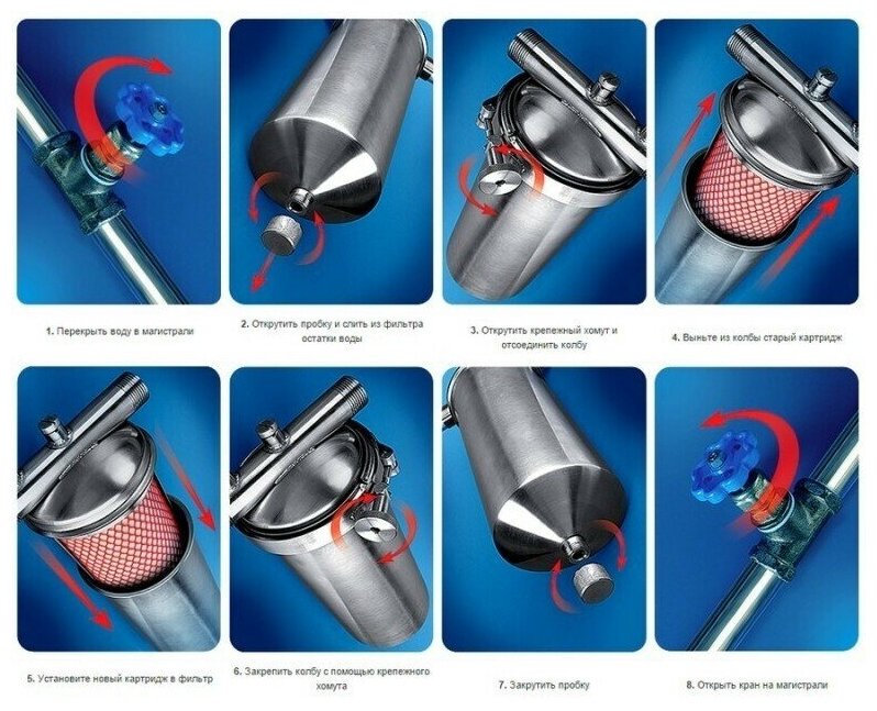 Filter type: main, type: filter housing, features: flushing, water type: hot, cold
