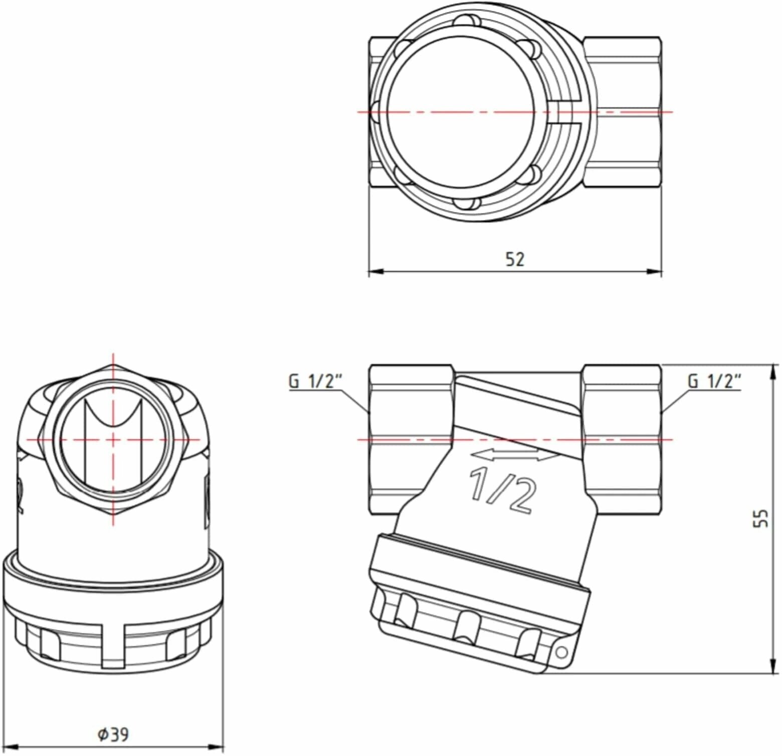 Body material: brass, type of connection: coupling BP/BP, conditional pressure: PN 16, cell size: 300 microns, options: drain