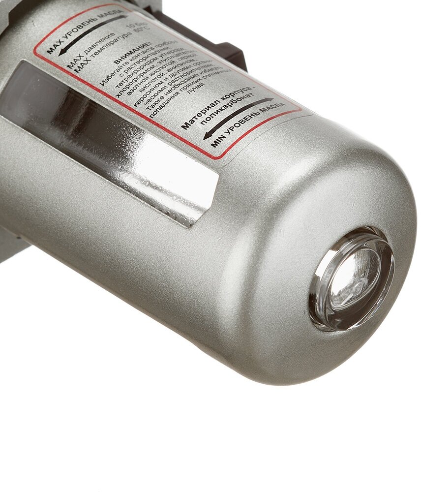 Type: lubricator, filter type: air, operating pressure: 10 atm, inlet connection diameter: 1/4F, outlet connection diameter: 1/4F