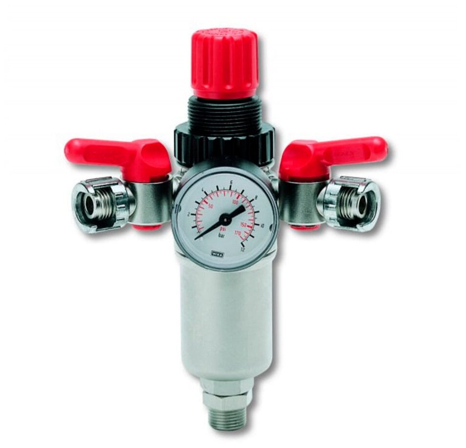 Type: regulator, filter type: air, operating pressure: 12 atm, inlet connection diameter: 1/2M, outlet connection diameter: 1/4F