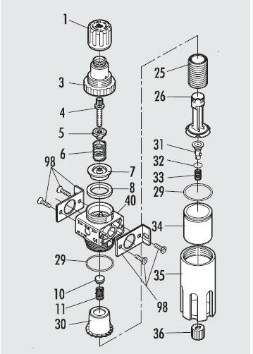 Type: dehumidifier, regulator, filter type: air, operating pressure: 12 atm, inlet connection diameter: 1/4F, outlet connection diameter: 1/4F