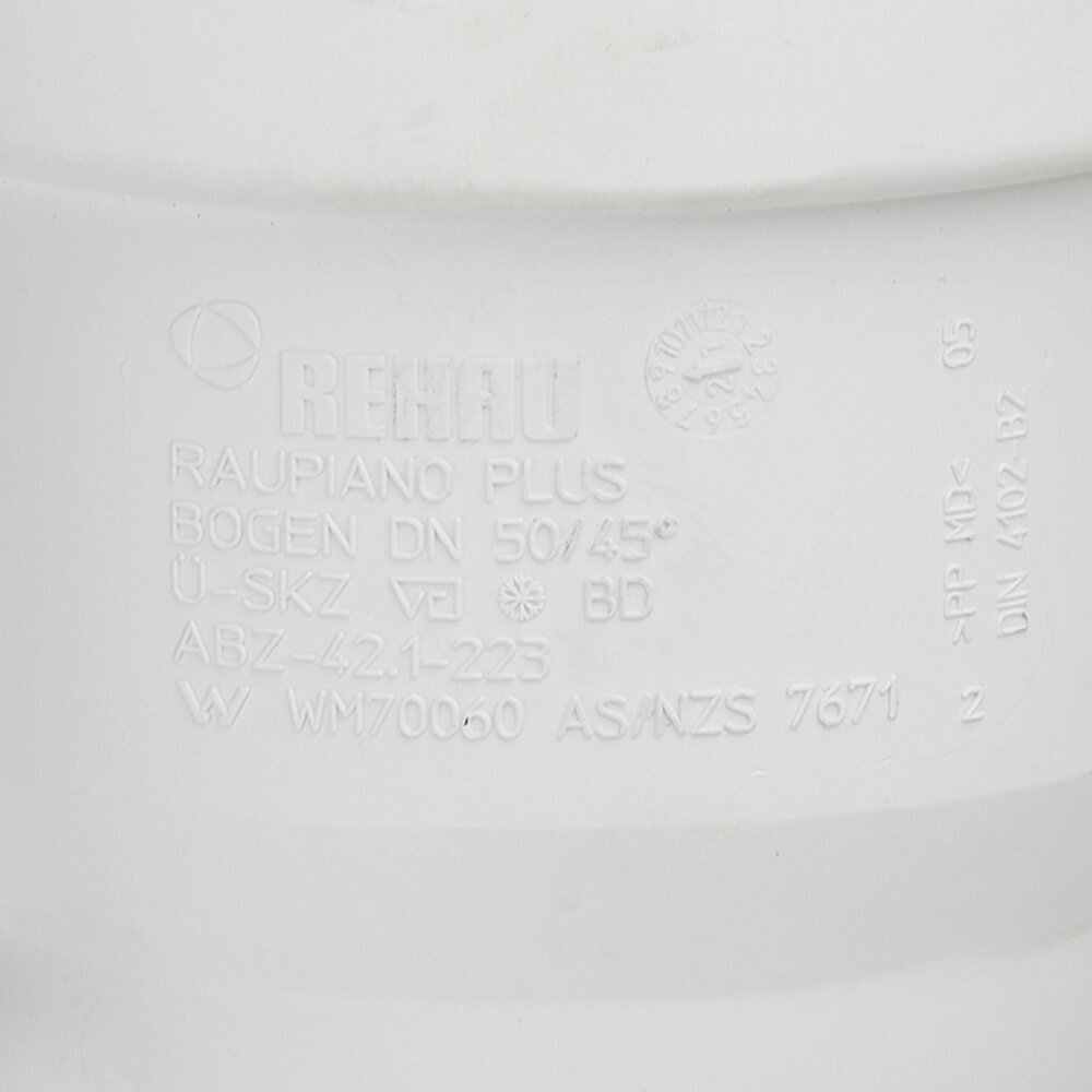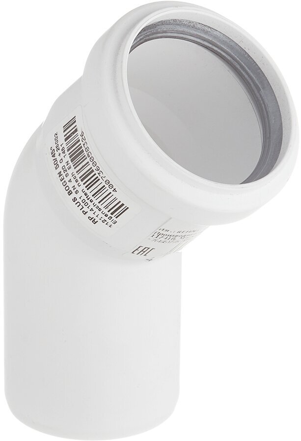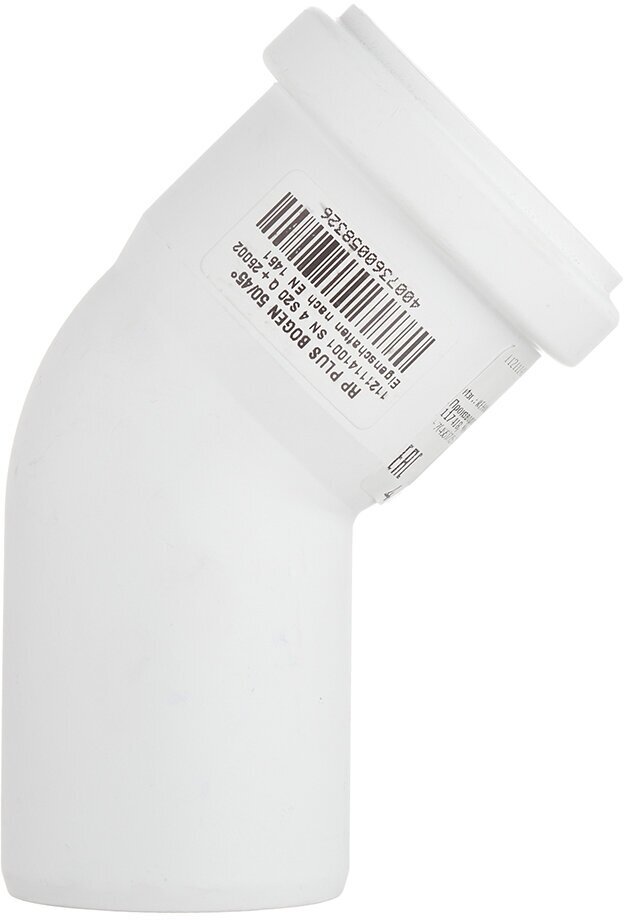 Fitting type: elbow, angle: 45, nominal bore: 50, connection method: socket, material: polypropylene, type of sewerage: internal