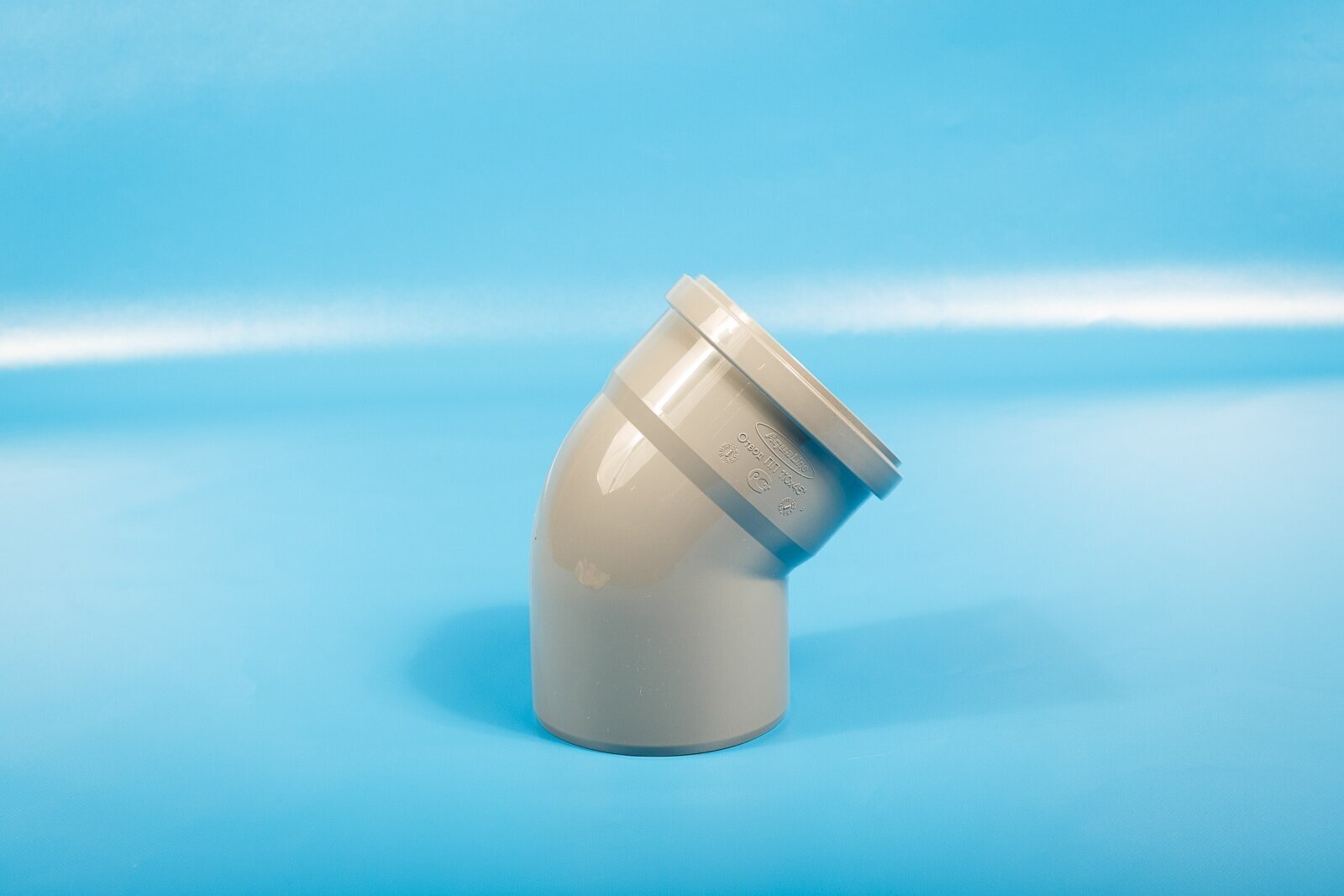 Fitting type: elbow, angle: 45, nominal bore: 110, outer diameter: 110, connection method: socketless, material: polypropylene, sewage type: internal