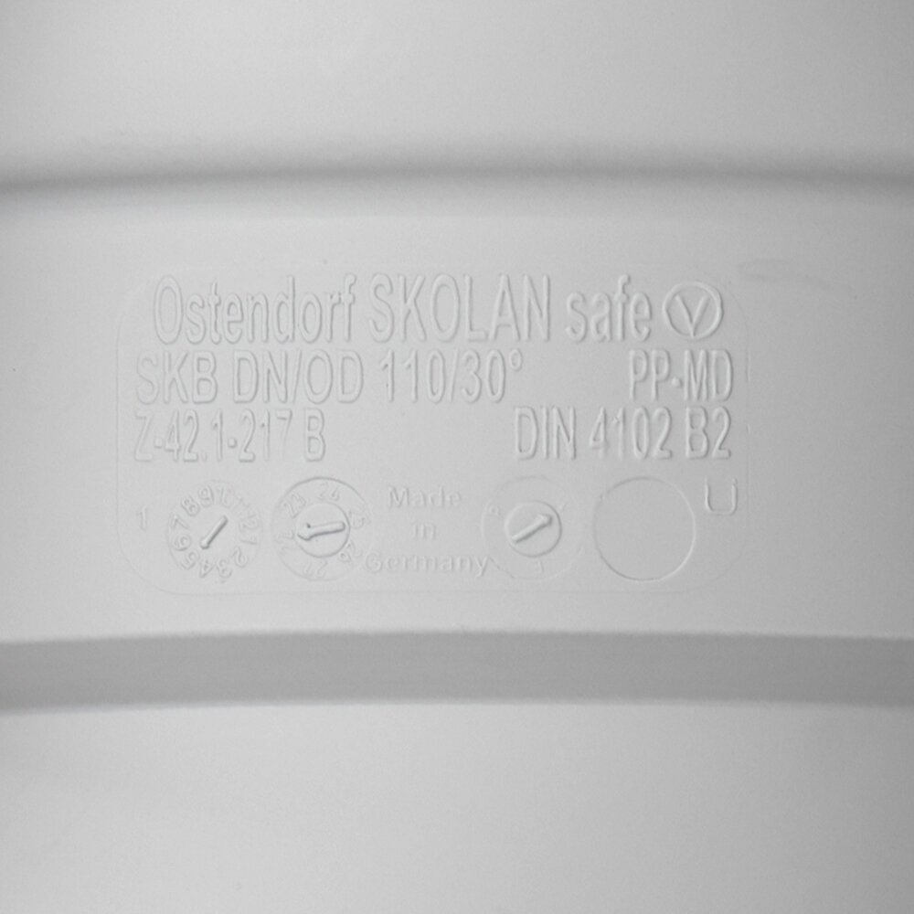 Fitting type: elbow, angle: 30, nominal bore: 100, connection method: socket, material: polypropylene, type of sewerage: internal