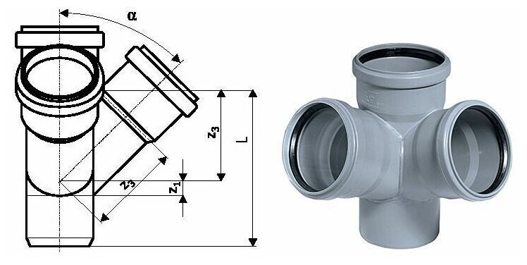 Fitting type: two-plane cross, angle: 87/90, nominal bore: 110, connection method: socket, material: polypropylene, type of sewerage: internal