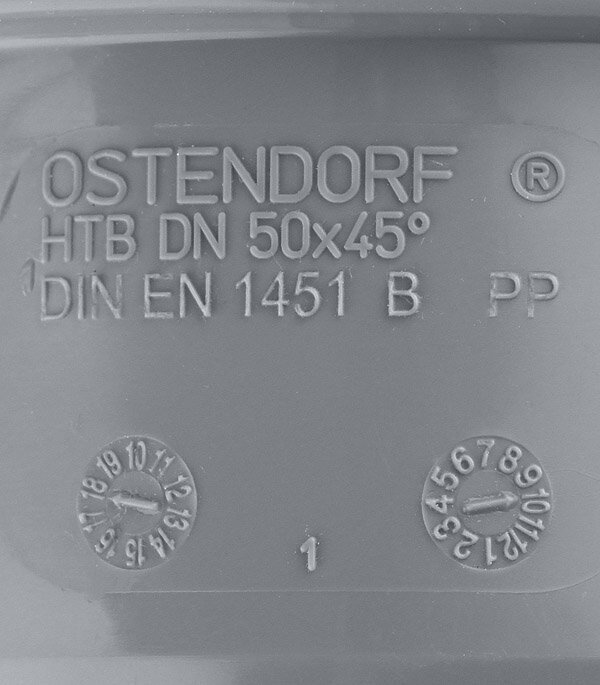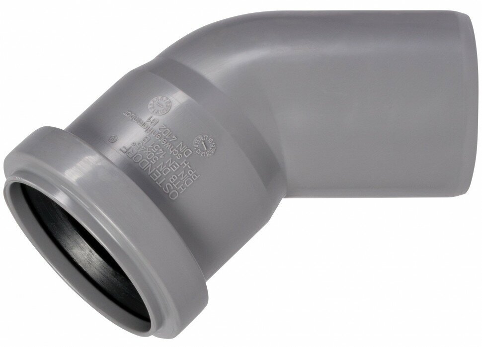 Fitting type: elbow, angle: 45, nominal bore: 50, outer diameter: 50, connection method: socket, material: polypropylene, type of sewerage: internal