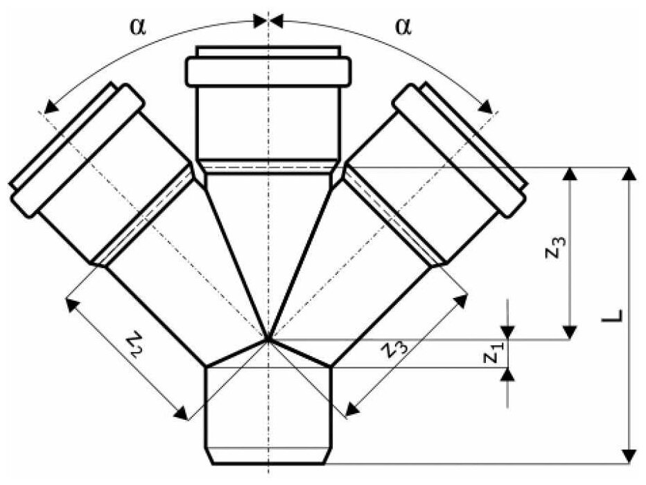 Fitting type: single-plane cross, angle: 67, nominal bore: 75, connection method: socketless, material: polypropylene, type of sewerage: internal