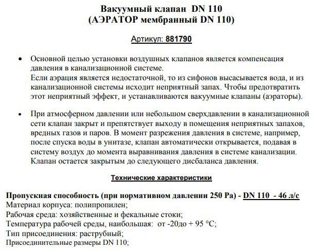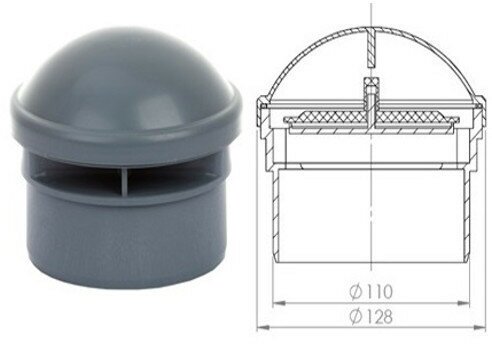 Fitting type: aerator, nominal bore: 110, material: polypropylene, sewage type: internal