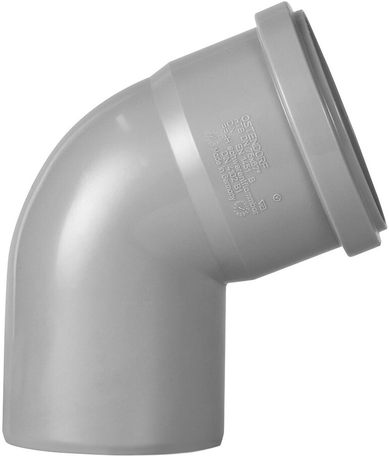 Fitting type: elbow, angle: 67, nominal bore: 75, connection method: socketless, material: polypropylene, sewage type: internal