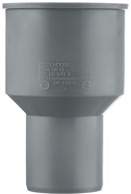 Fitting type: adapter, nominal bore: 50, connection method: socketless, material: polypropylene, type of sewerage: internal