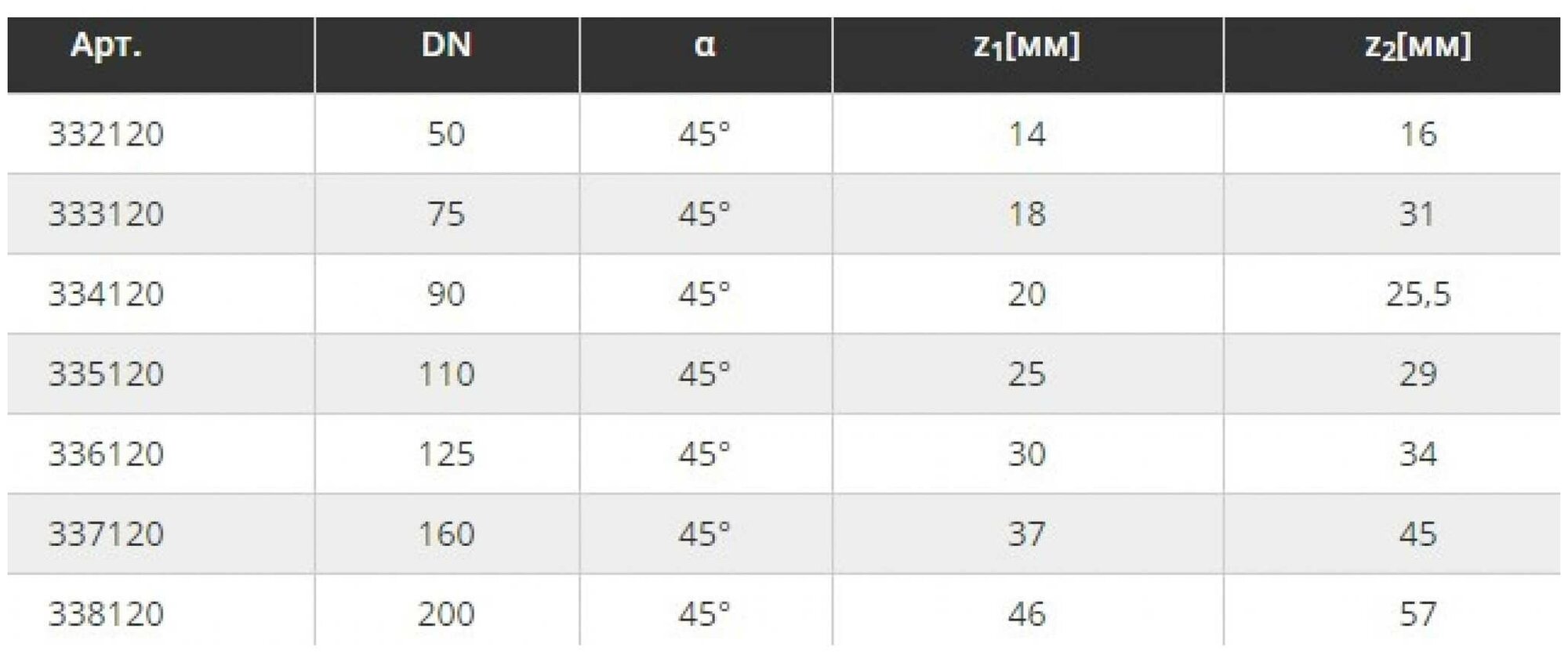 Fitting type: elbow, angle: 45, nominal bore: 100, connection method: socket, material: polypropylene, type of sewerage: internal
