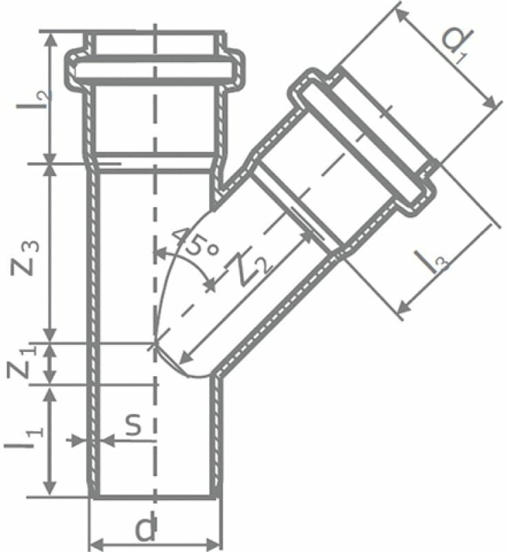 Fitting type: tee, angle: 45, nominal bore: 200, connection method: socketless, material: PVC-U, sewerage type: external