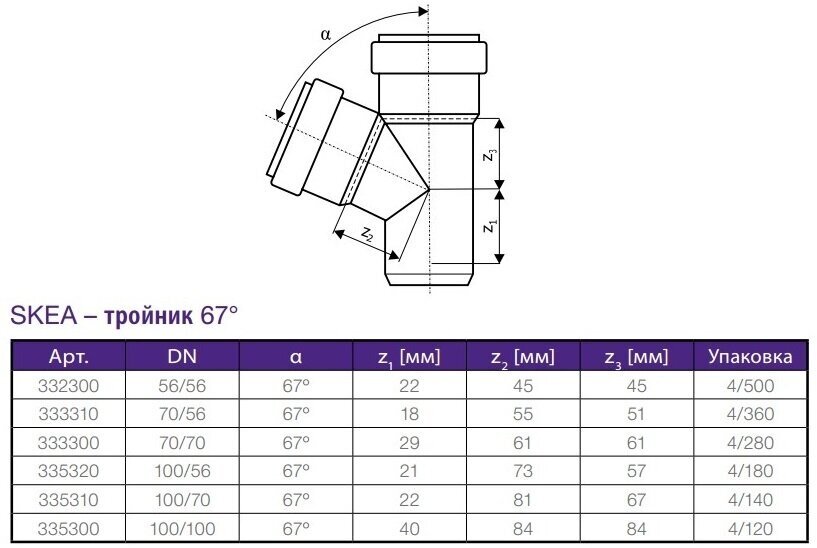 Fitting type: tee, angle: 67, nominal bore: 100, connection method: socketless, material: polypropylene, sewage type: internal