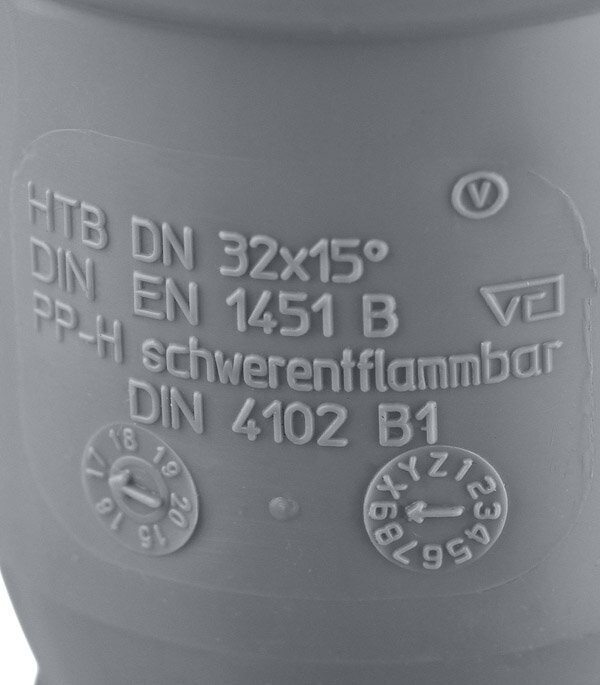 Fitting type: elbow, angle: 15, nominal bore: 32, connection method: socketless, material: polypropylene, sewage type: internal