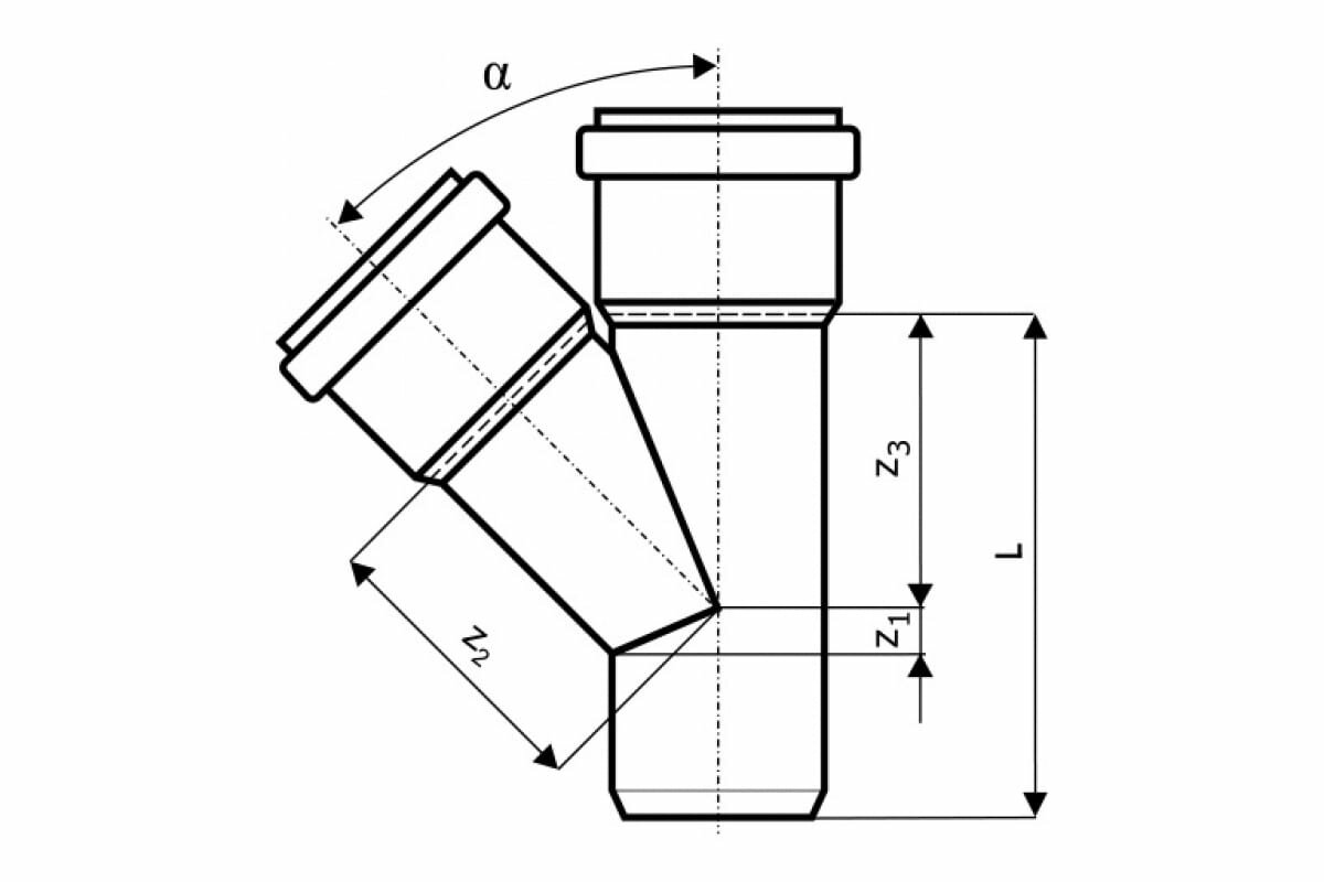 Fitting type: tee, angle: 87/90, nominal bore: 125, connection method: socket, material: PVC-U, sewerage type: external