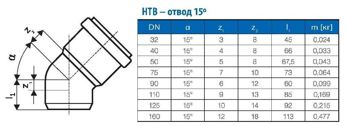 Fitting type: outlet, angle: 15, material: polypropylene, type of sewerage: internal