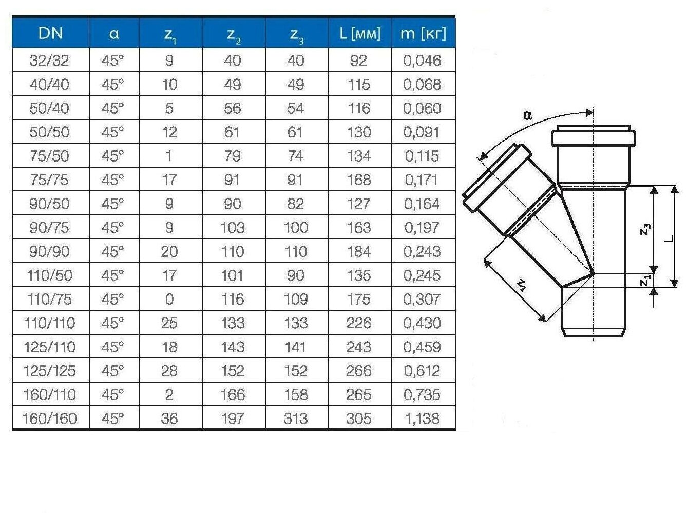 Fitting type: tee, angle: 45, nominal bore: 110, connection method: socket, material: polypropylene, type of sewerage: internal