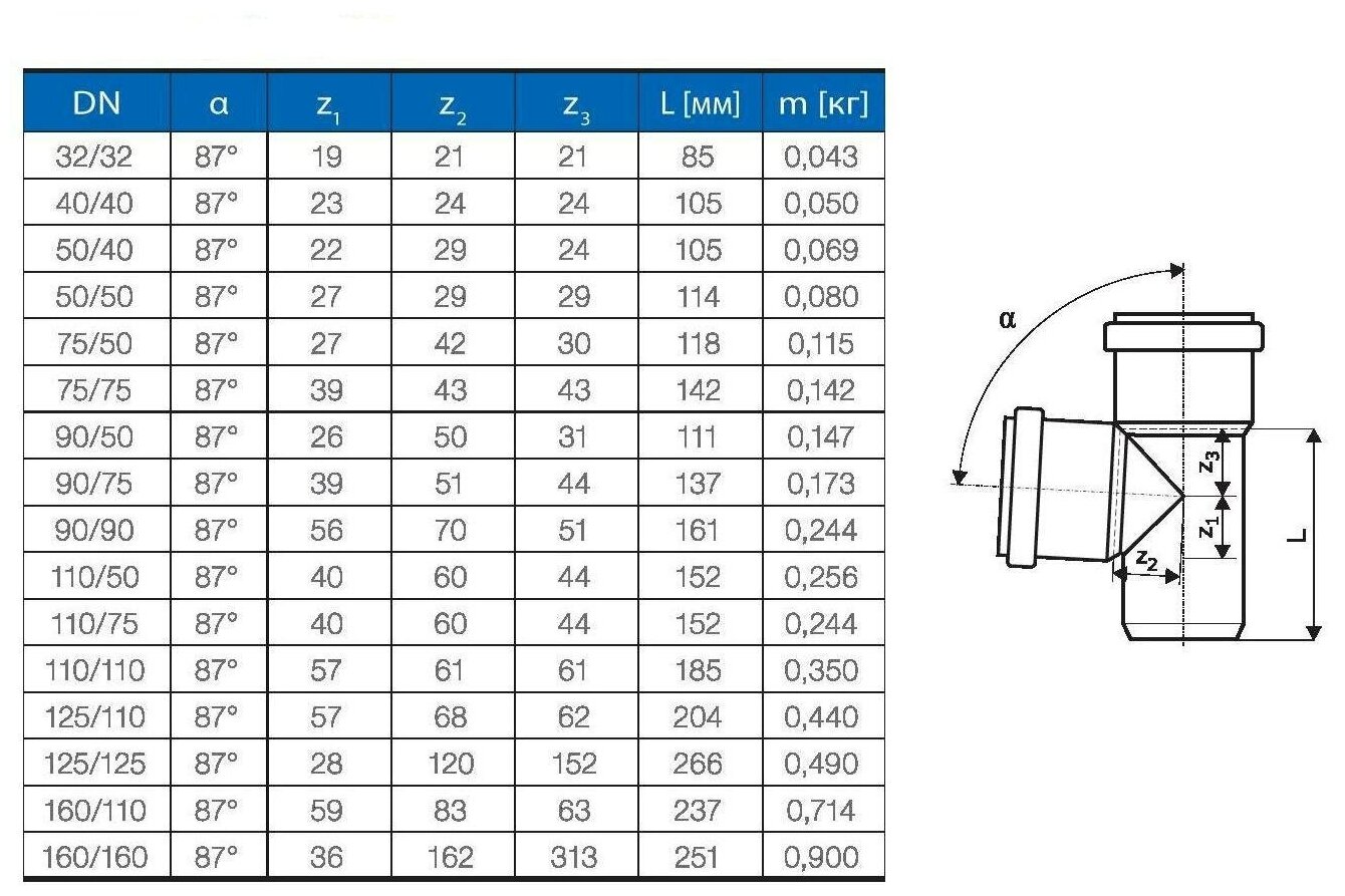 Fitting type: tee, material: polypropylene, sewage type: internal
