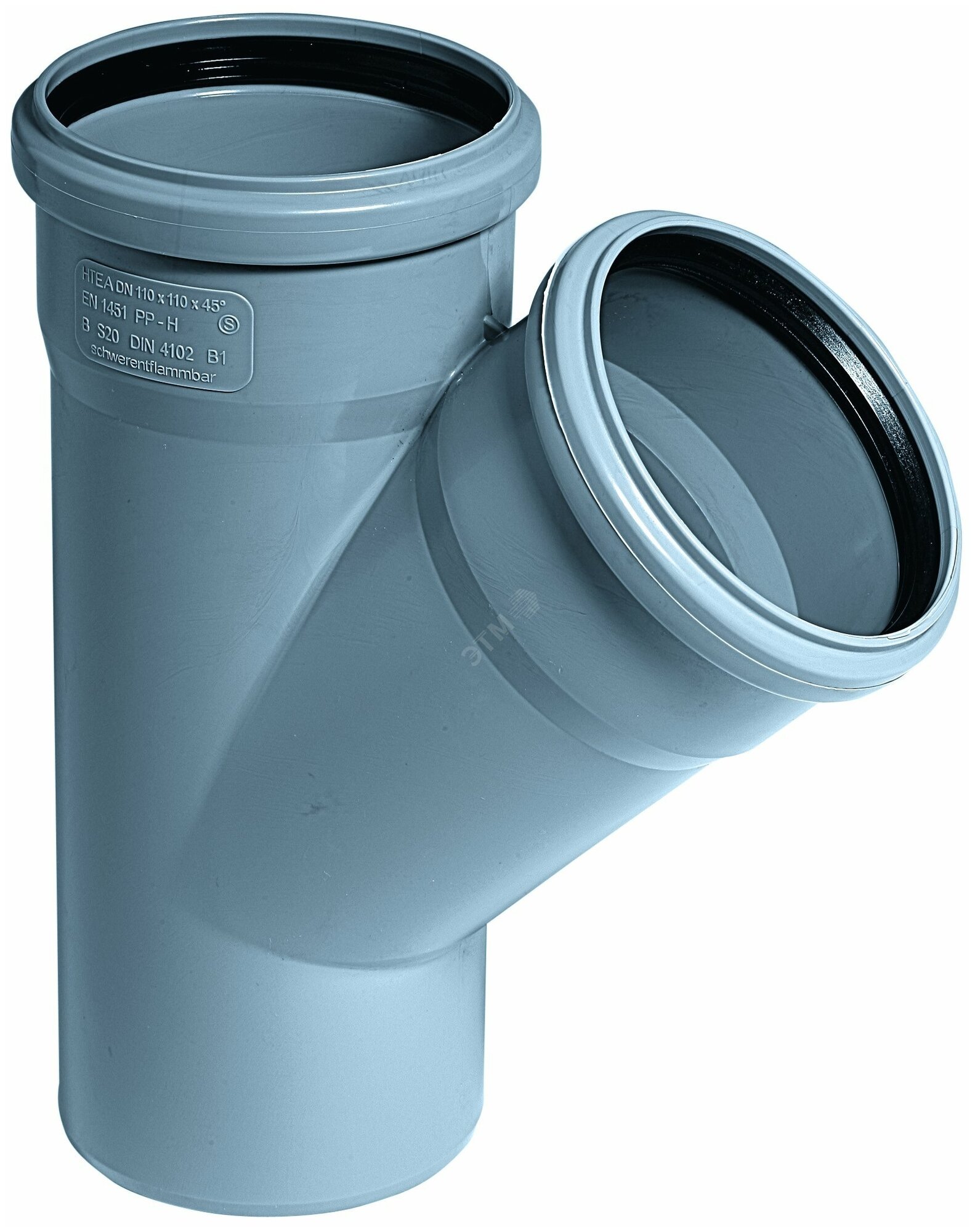 Description: Fitting type: tee, angle: 45, nominal bore: 90, outer diameter: 90, inner diameter: 90 mm, connection method: socket, material: polypropylene, type of sewerage: internal