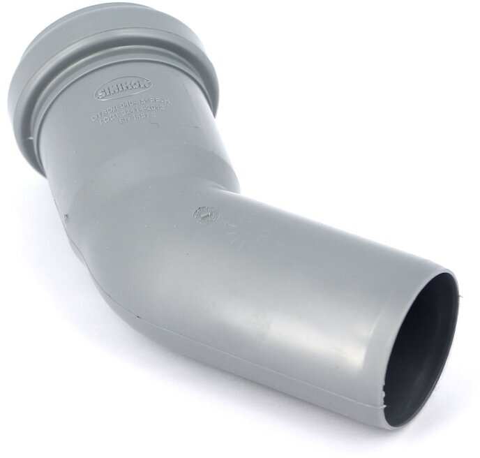 Fitting type: elbow, angle: 45, nominal bore: 40, connection method: socket, material: polypropylene, type of sewerage: internal