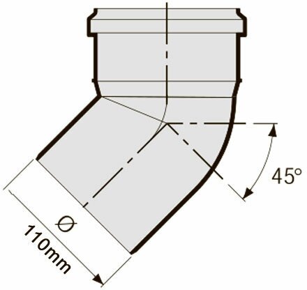 Fitting type: elbow, angle: 45, nominal bore: 110, connection method: socket, material: polypropylene, type of sewerage: internal