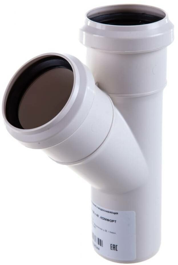 Fitting type: tee, angle: 45, nominal bore: 50, connection method: socket, material: polypropylene, sewage type: internal