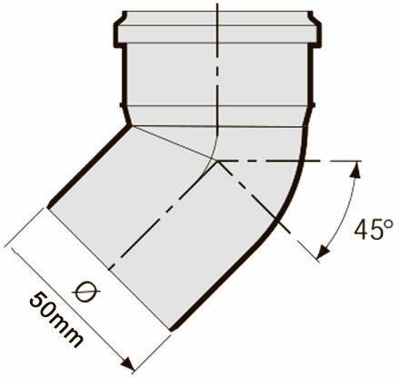 Fitting type: elbow, angle: 45, nominal bore: 50, connection method: socketless, material: polypropylene, type of sewerage: internal