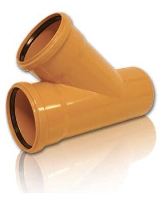Fitting type: tee, angle: 45, nominal bore: 100, outer diameter: 110, connection method: spigot, material: PVC-U, sewage type: external