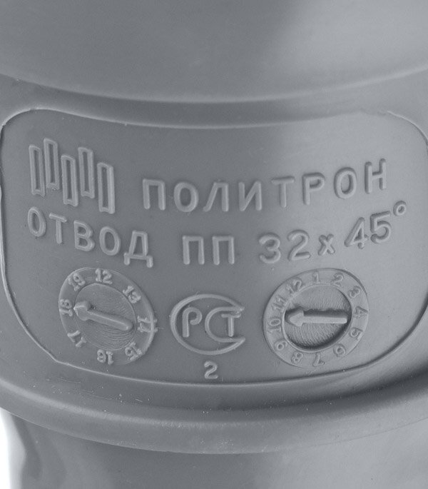 Fitting type: elbow, angle: 45, nominal bore: 32, connection method: socketless, material: polypropylene, sewage type: internal