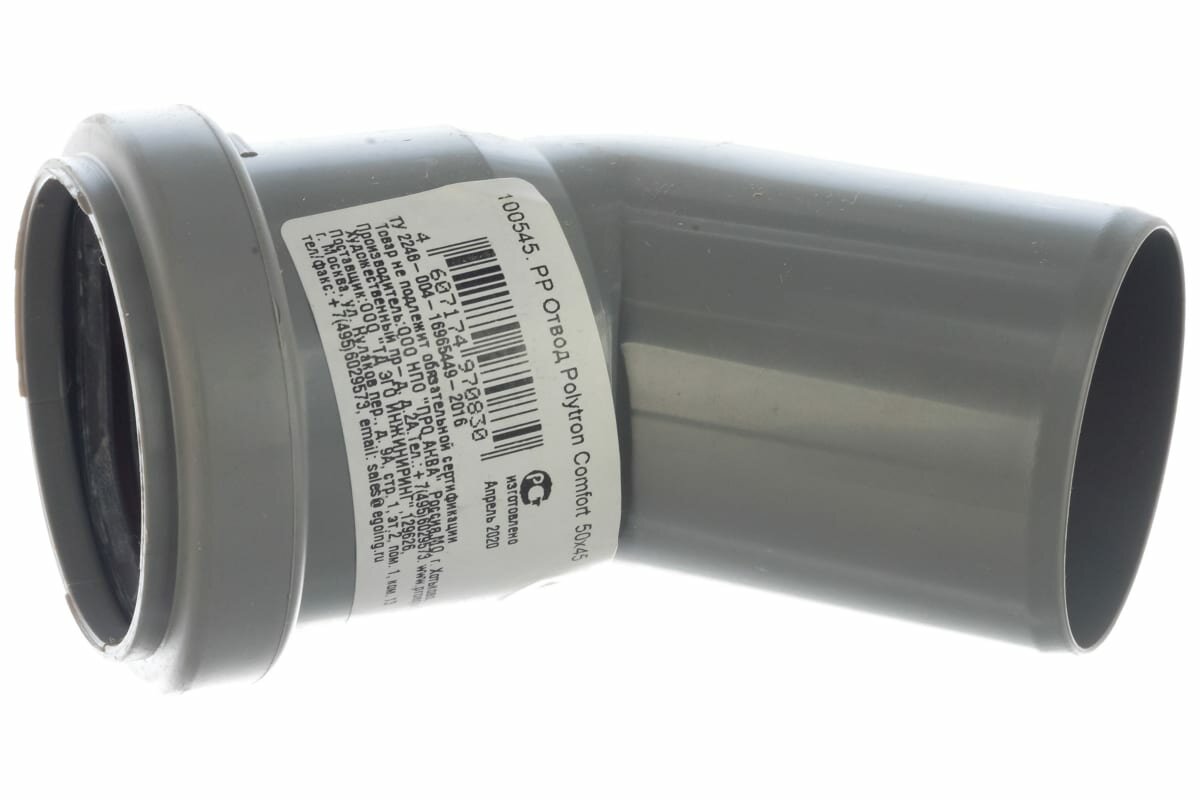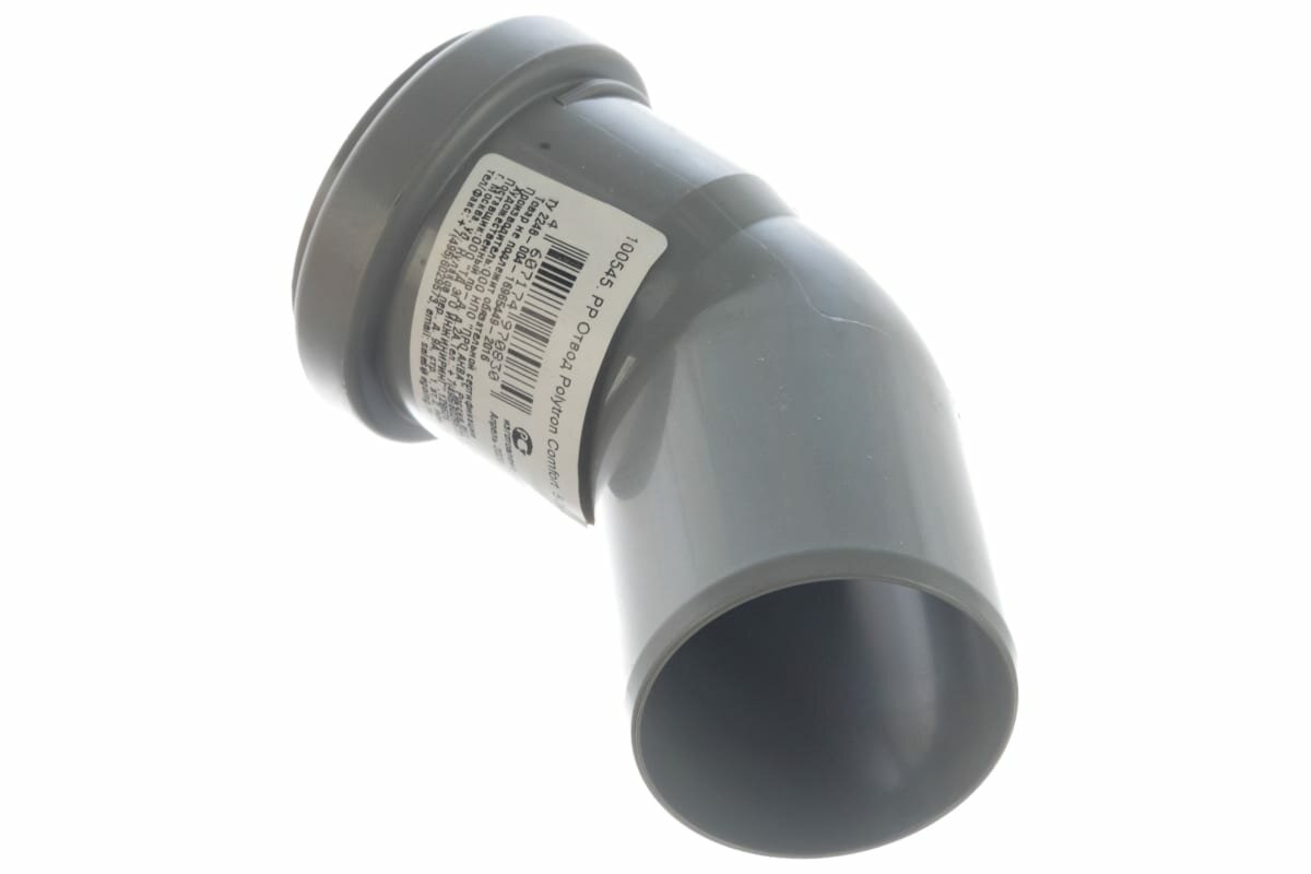 Fitting type: elbow, angle: 45, nominal bore: 50, connection method: socketless, material: polypropylene, type of sewerage: internal