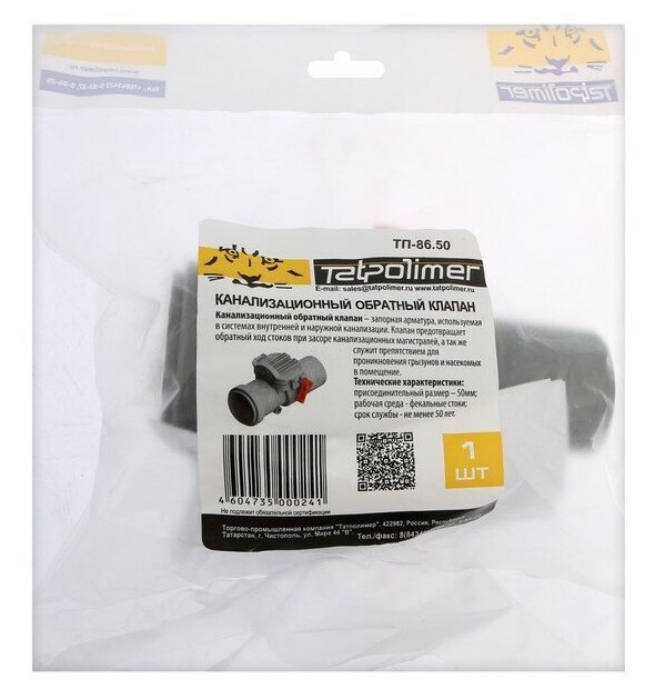 Fitting type: check valve, outer diameter: 50, material: polypropylene