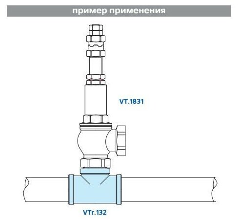 Tee with transition to bunks. R. 1/2 in.-out.-in. VALTEC