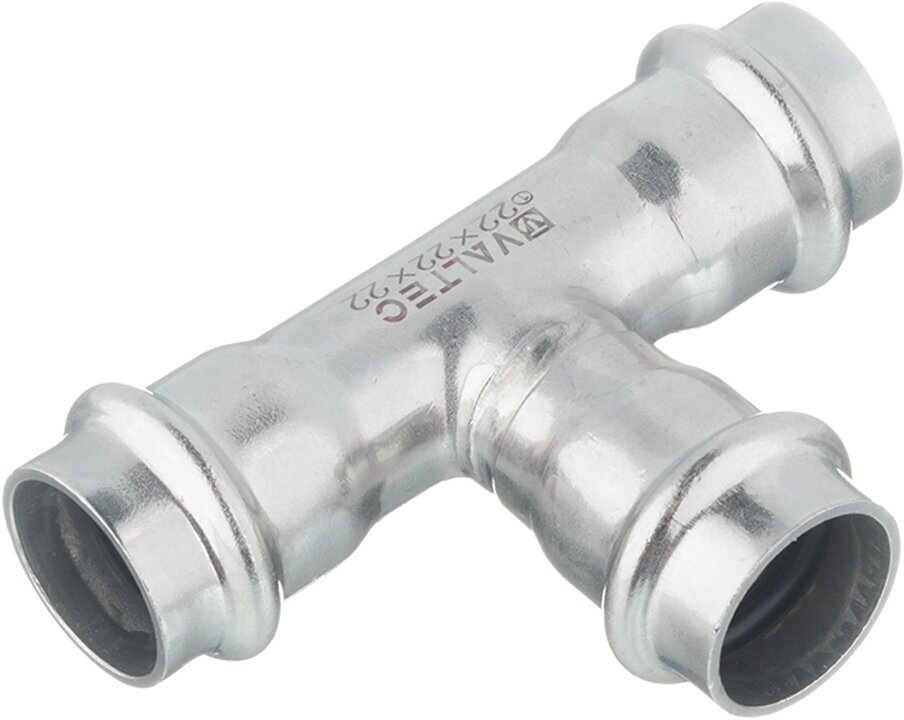 Type: tee, connection type: press, press fitting profile: V, pipe diameter: 22 mm, material: stainless steel
