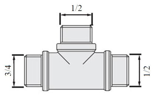 Valtec Fitting threaded tee reducer with male thread 3/4 x 1/2 x 1/2