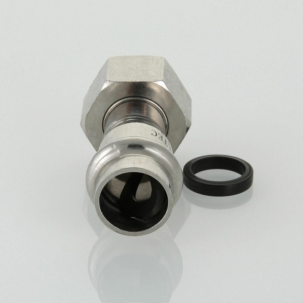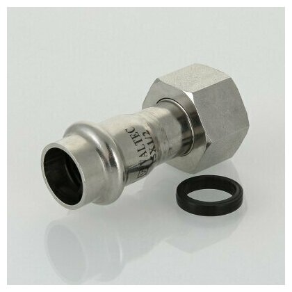 Type: adapter, connection type: press-thread, connection: male / female, press fitting profile: V, pipe diameter: 22 mm, 22 mm, material: stainless steel, with union nut, with seal, combined