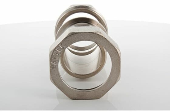 Type: spur, connection type: thread, connection: external / internal, pipe diameter: 2", material: nickel-plated brass, detachable, with union nut
