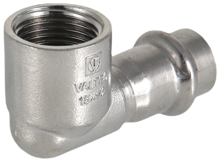 Type: elbow 90°, connection type: press-thread, connection: internal, press fitting profile: V, pipe diameter: 15 mm, material: stainless steel, transitional, combined