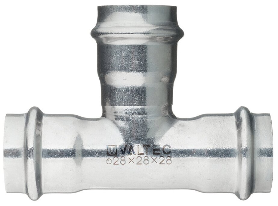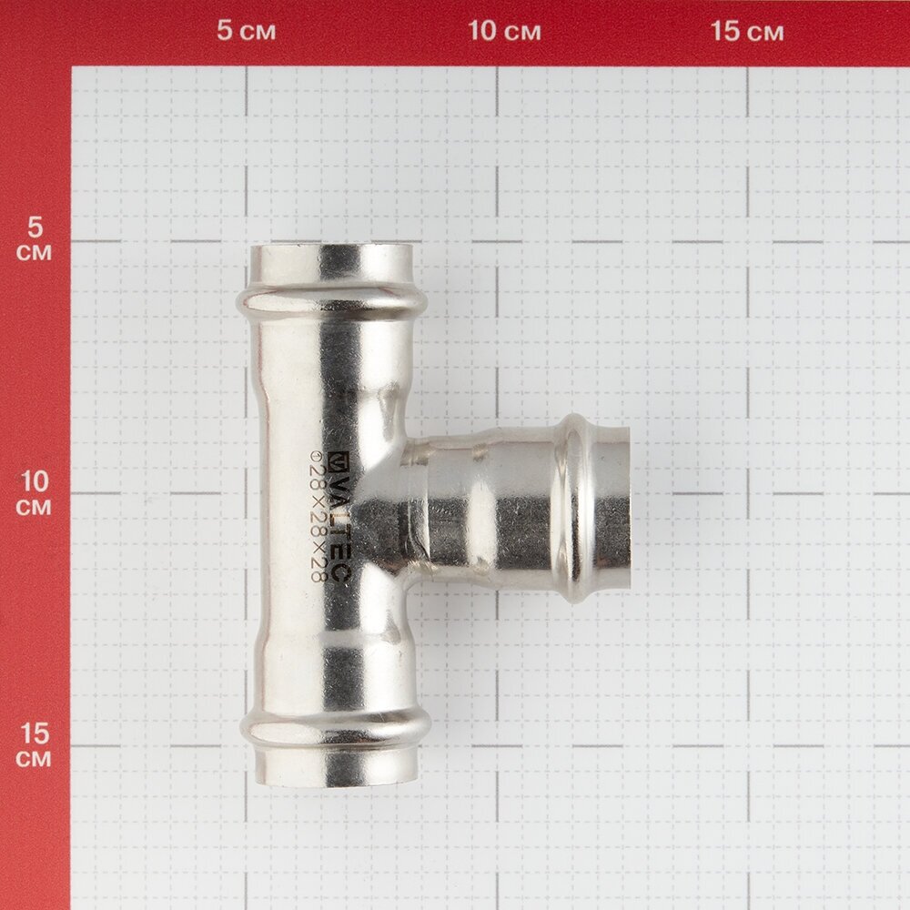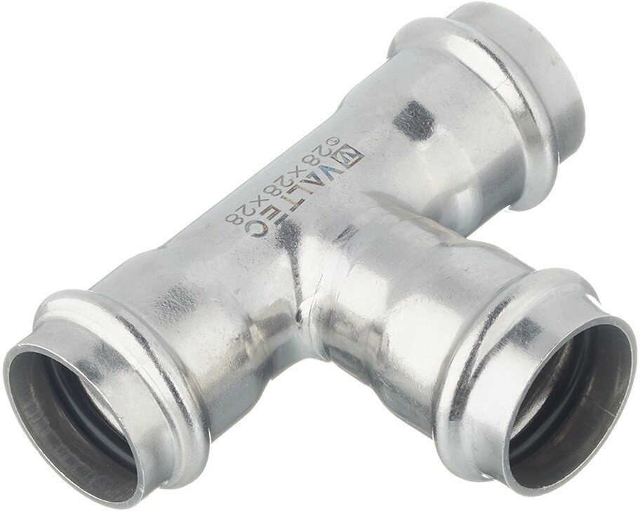 Type: tee, connection type: press, pipe diameter: 28 mm, material: stainless steel