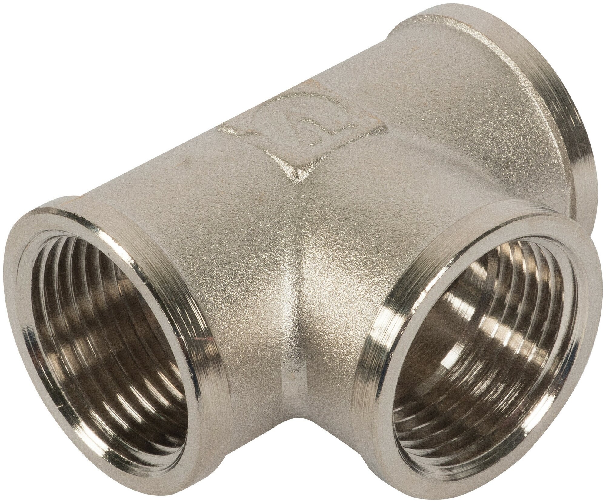 Type: tee, connection type: thread, connection: female, pipe diameter: 1", 1/2", material: nickel-plated brass, adapter